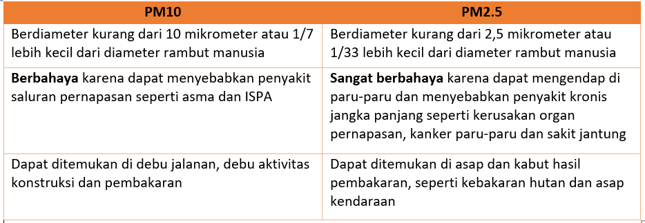 Mungkin masih hangat di ingatan kita tentang berita Jakarta sebagai kota dengan polusi paling tinggi di dunia pada Agustus 2019. Pada saat itu tingkat PM2.5 Jakarta mencapai 92,4 μg/m3 dan PM10 mencapai 53,5 μg/m3. PM2.5 dan PM10 adalah dua indikator yang digunakan untuk mengukur tingkat polusi udara.