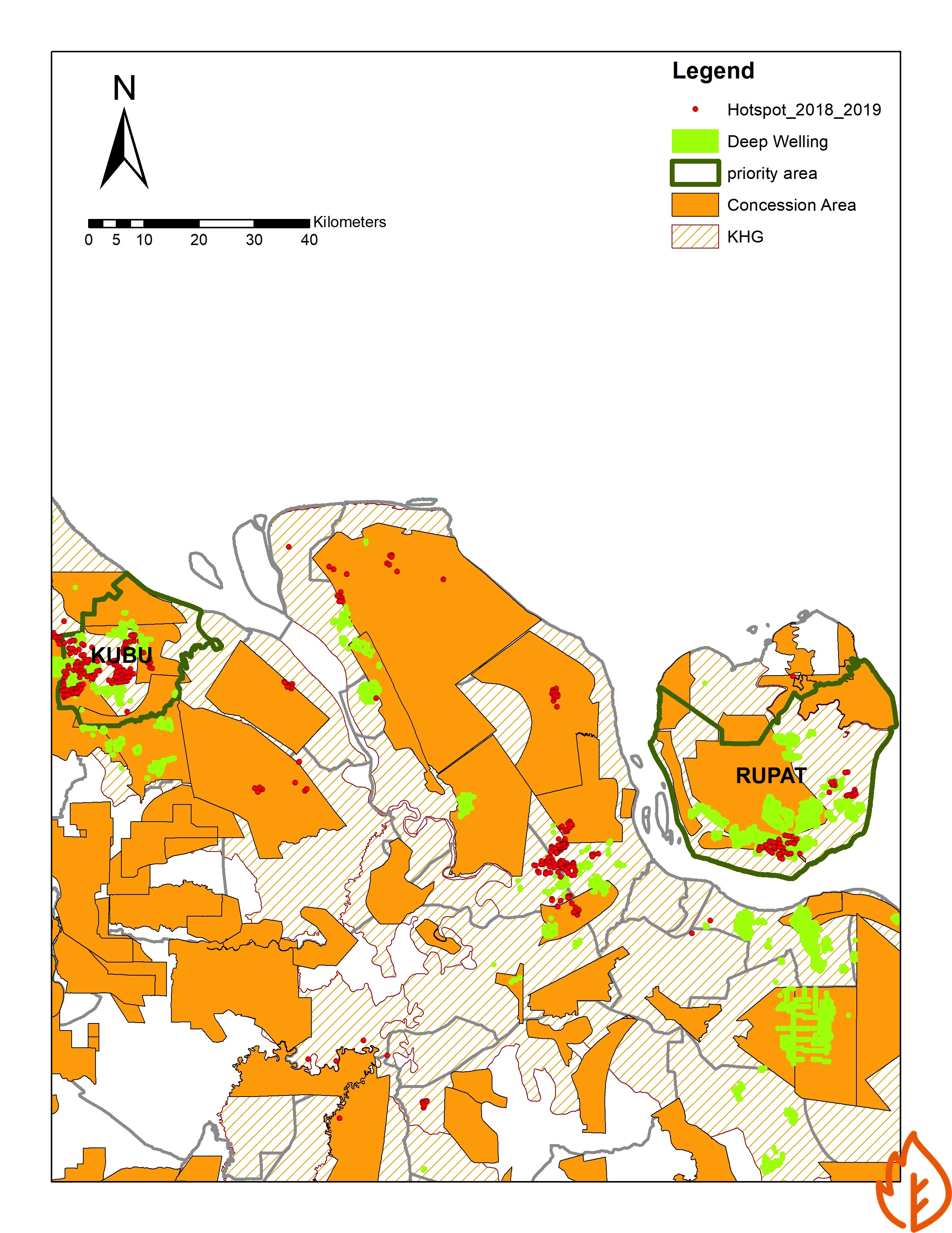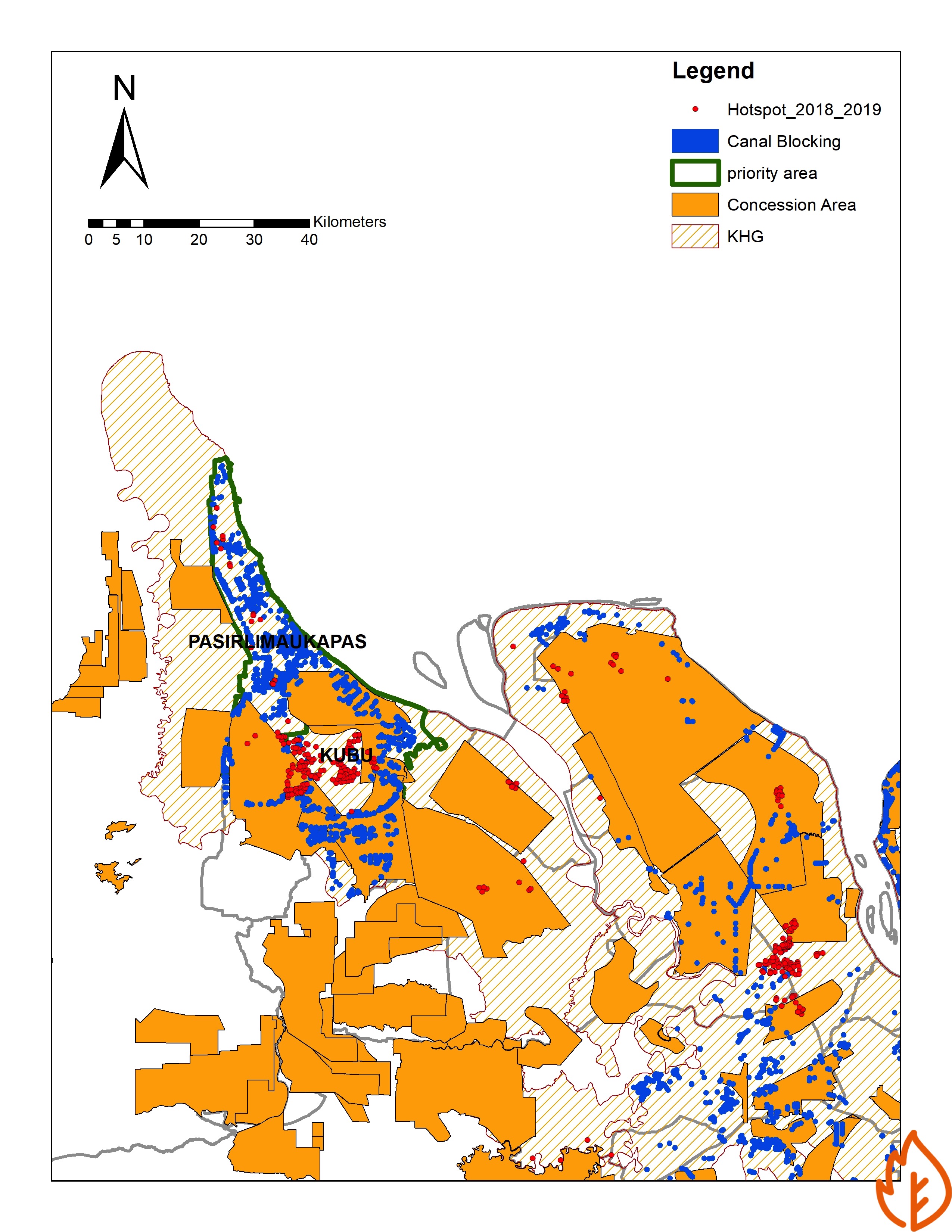 Selain itu, tim Pantau Gambut juga melakukan tumpang susun titik panas dengan Rencana TIndak Tahunan (RTT) restorasi gambut 2018 dan 2019 di Riau.