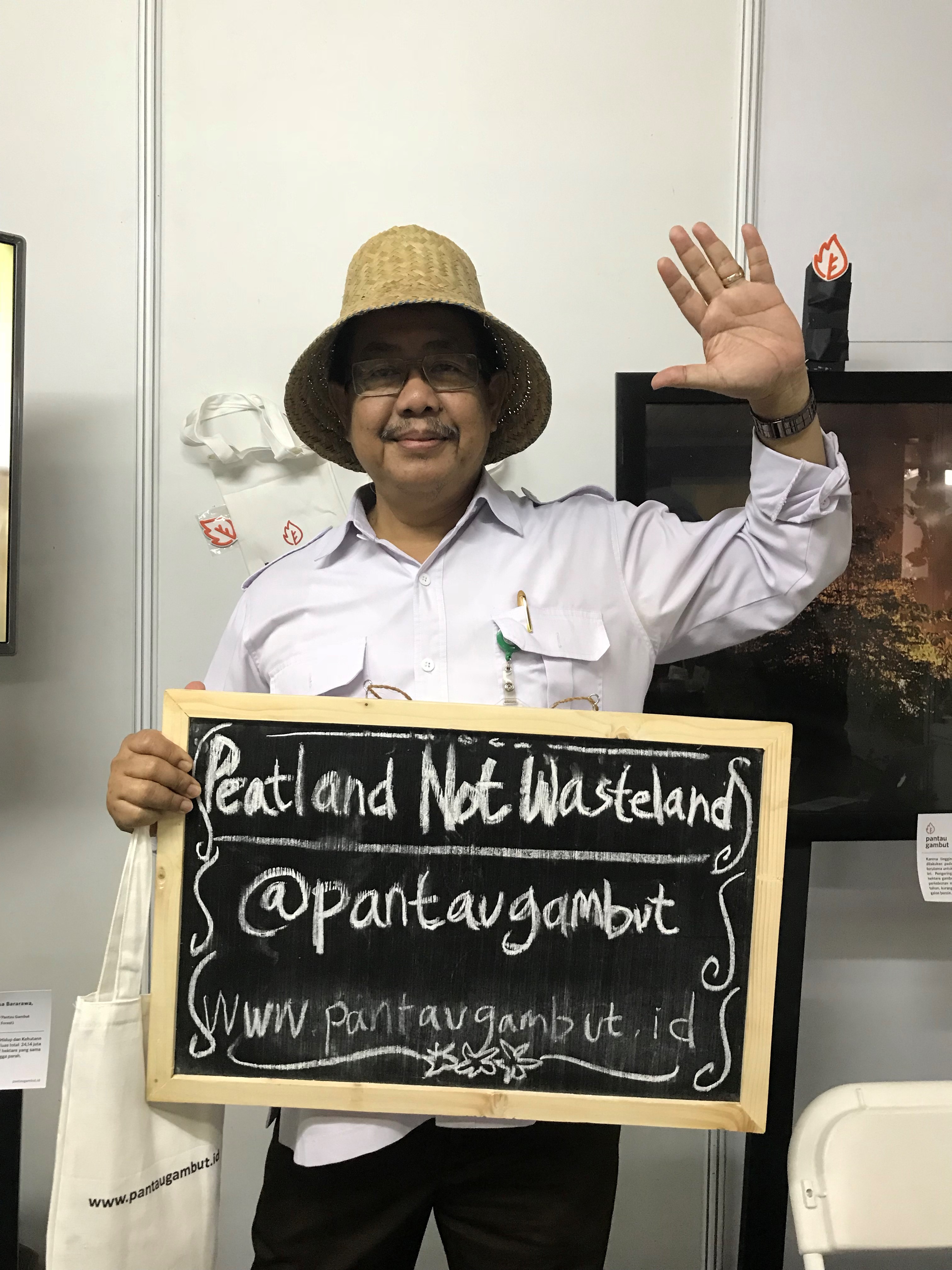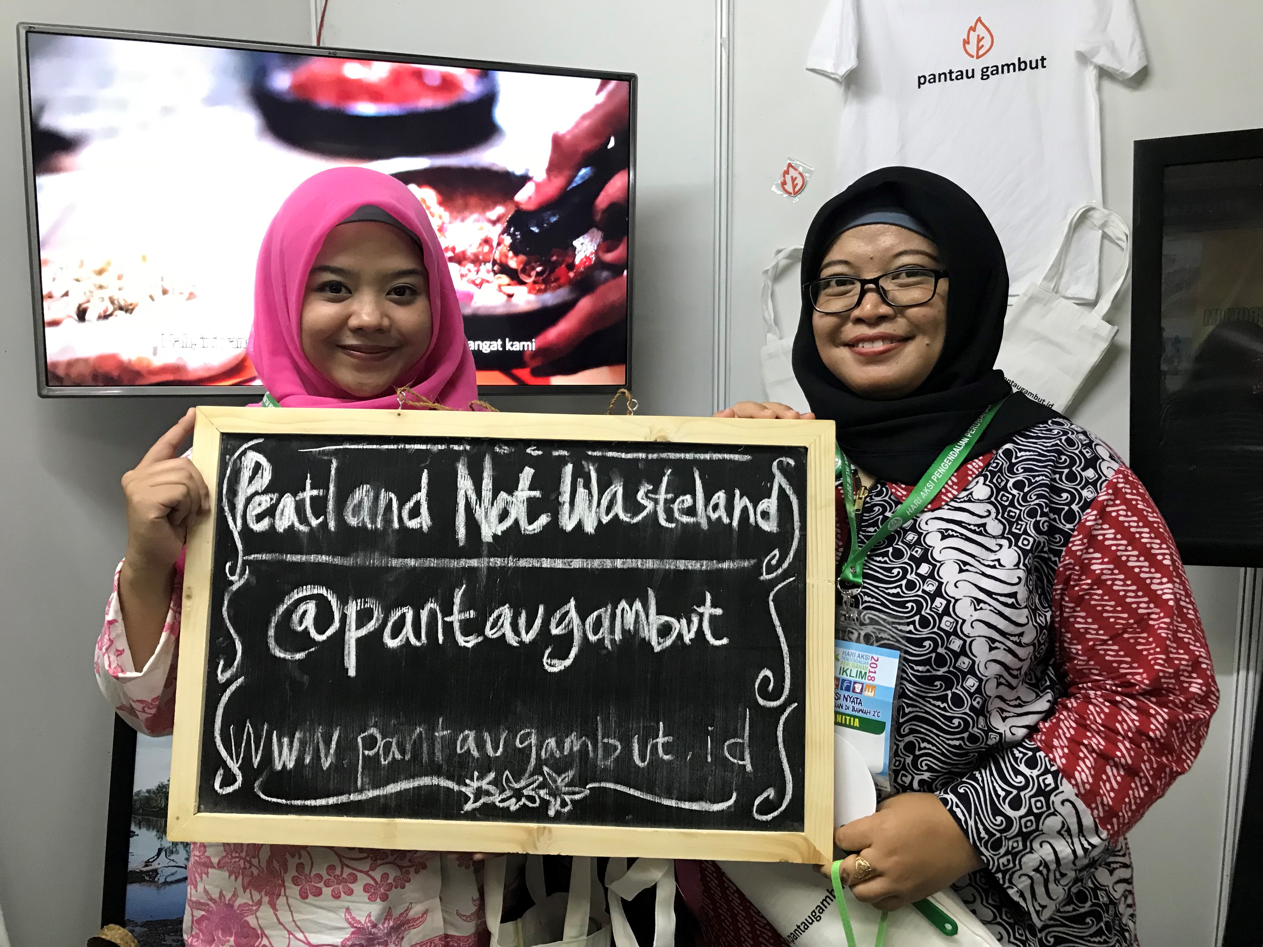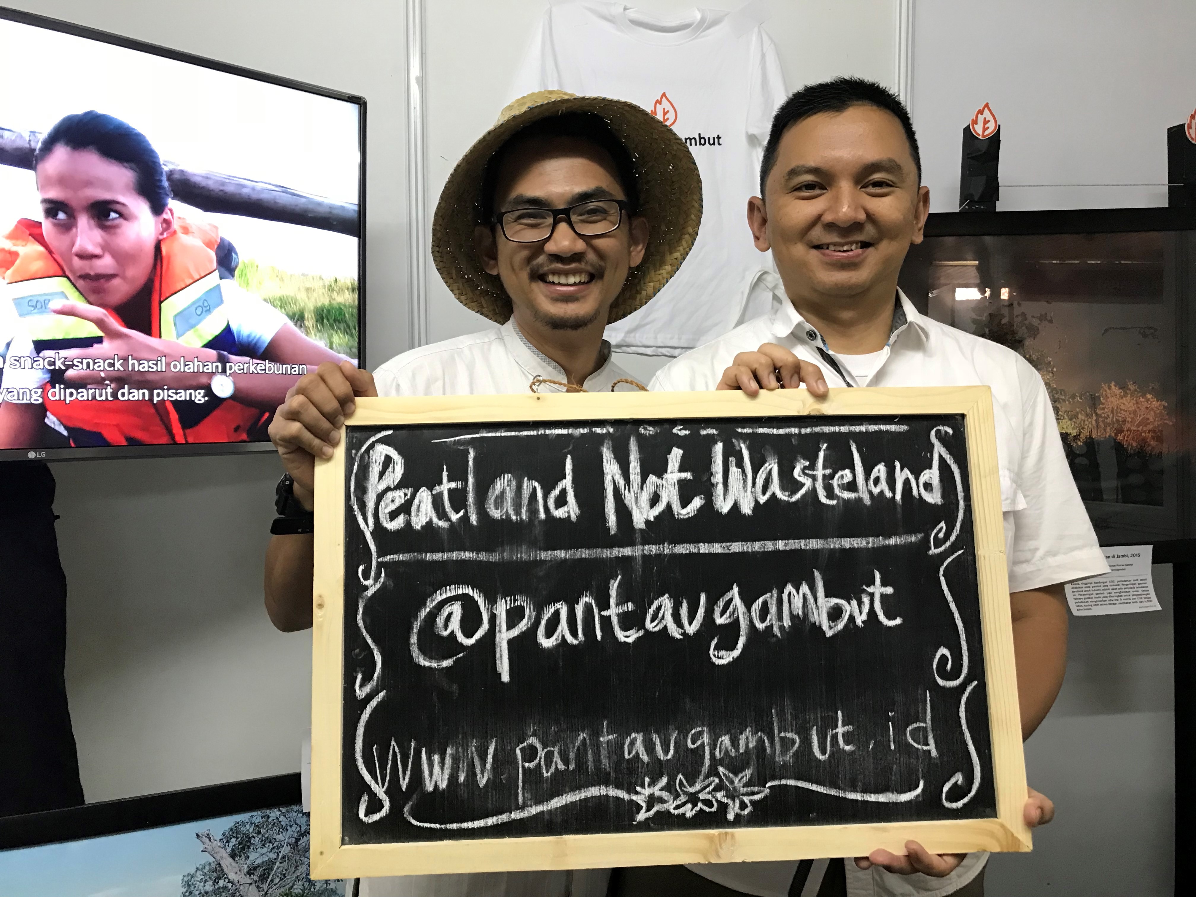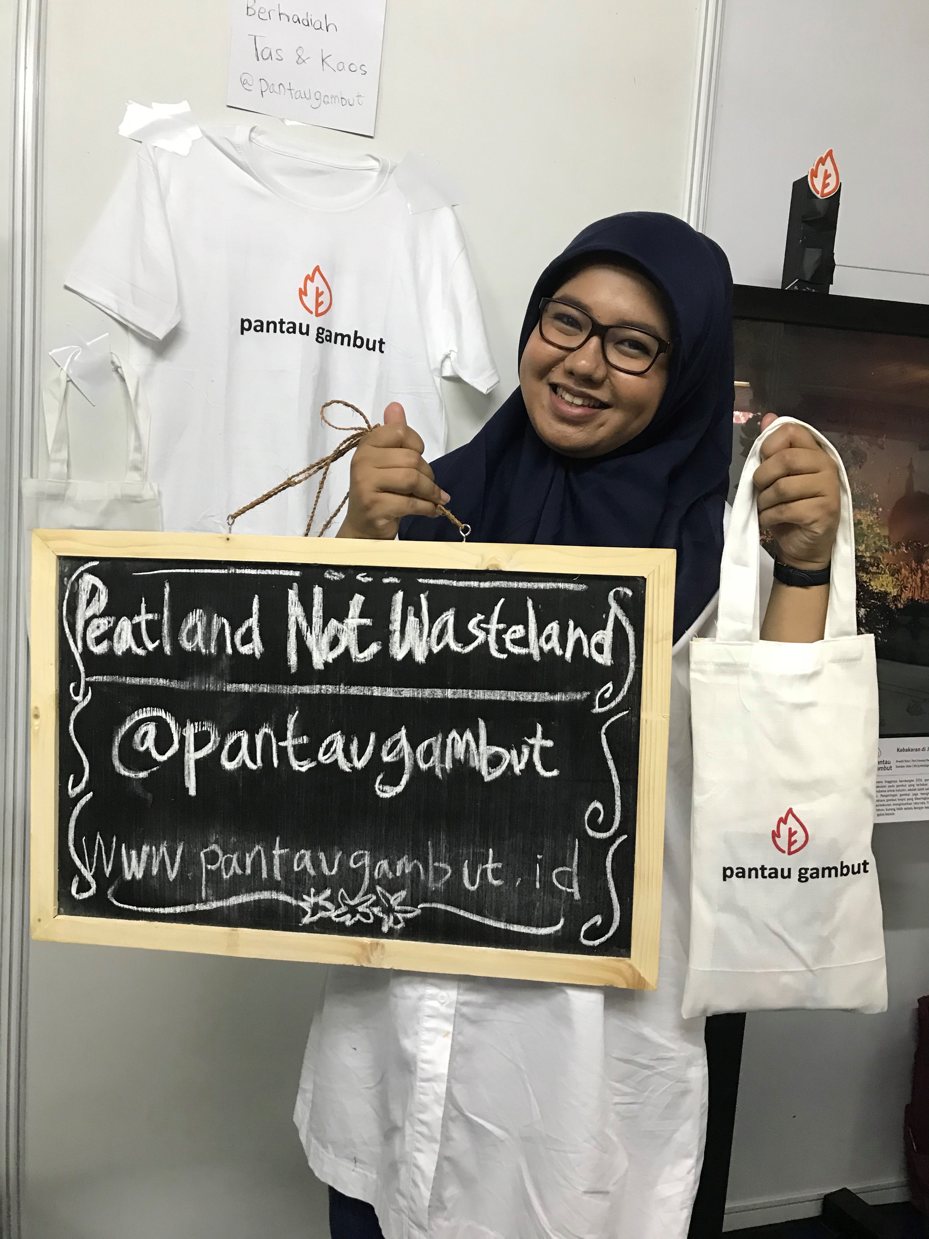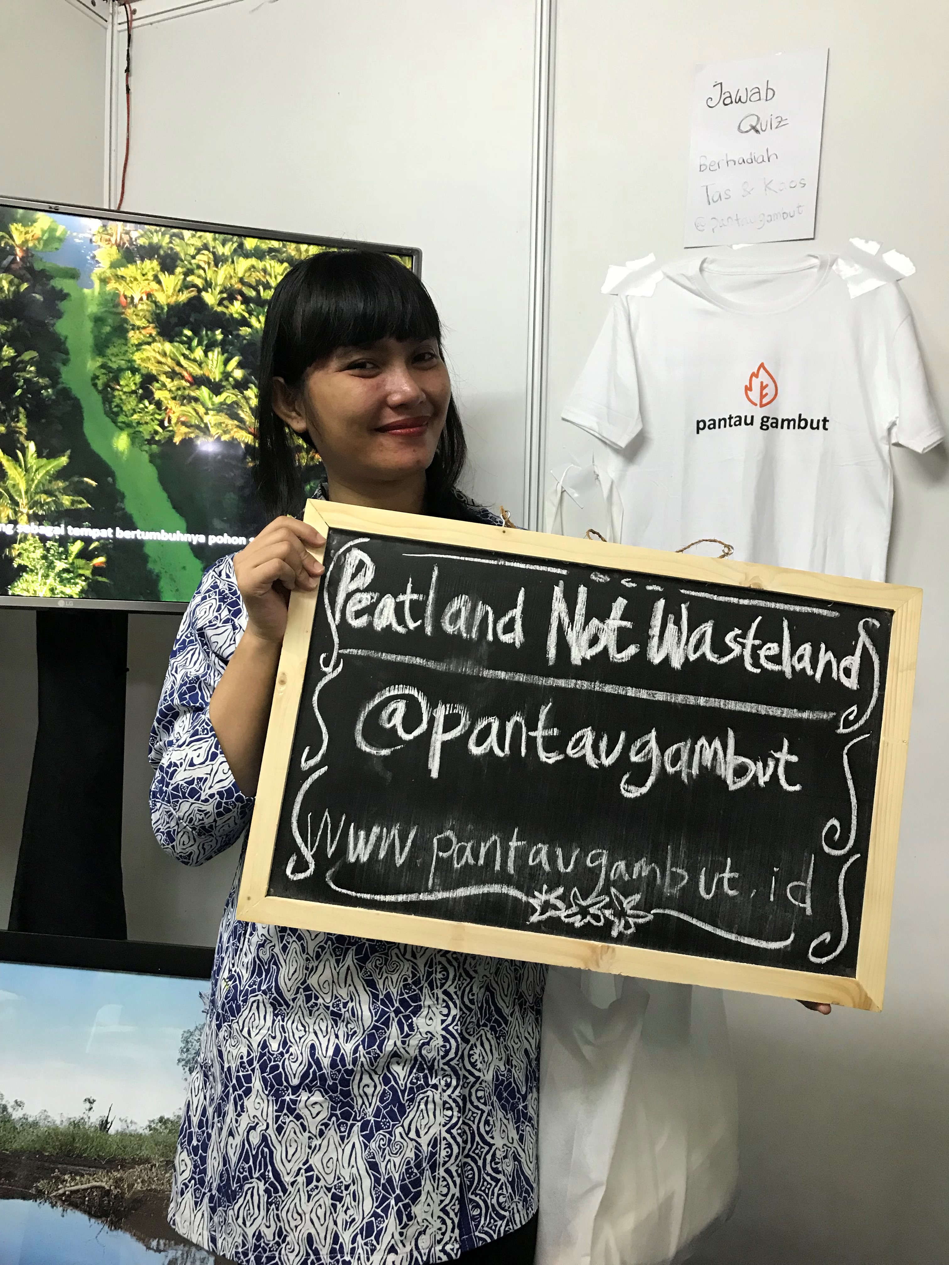 Pengunjung yang antusias ingin tahu lebih banyak tentang gambut meramaikan booth kami. Tidak lupa mereka juga berfoto sambil mengenakan topi dan tas yang terbuat dari Purun sambil memegang papan bertuliskan pesan agar tidak menganggap lahan gambut sebagai lahan yang tidak berguna, karena sesungguhnya begitu banyak potensi yang bisa dikelola dari hasil memanfaatkan lahan tersebut. Jaga terus gambut kita!