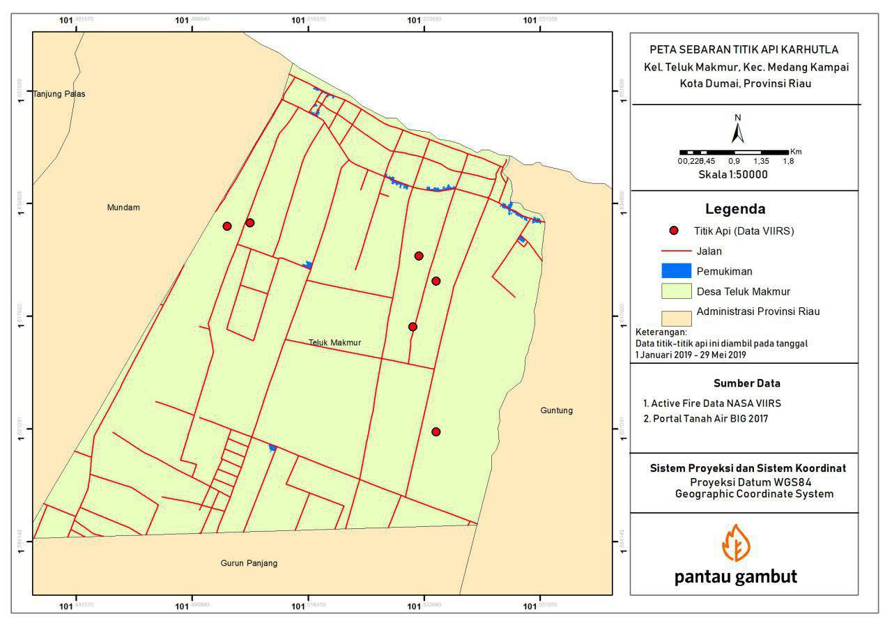 Teluk Makmur merupakan daerah yang wilayahnya sebagian besar adalah lahan gambut sehingga rawan karhutla di musim kemarau. Kelurahan ini juga salah satu area yang terbakar parah saat kebakaran besar melanda sejumlah wilayah di Indonesia pada tahun 2015. Setelah tiga tahun cukup tenang dari kebakaran hutan 2015, Teluk Makmur kembali mengalami kebakaran sejak awal tahun 2019. Menurut data yang tercatat sensor VIIRS, NASA, enam titik panas terpantau di lokasi dengan koordinat berbeda dalam wilayah Desa Teluk Makmur pada Januari - Mei 2019.