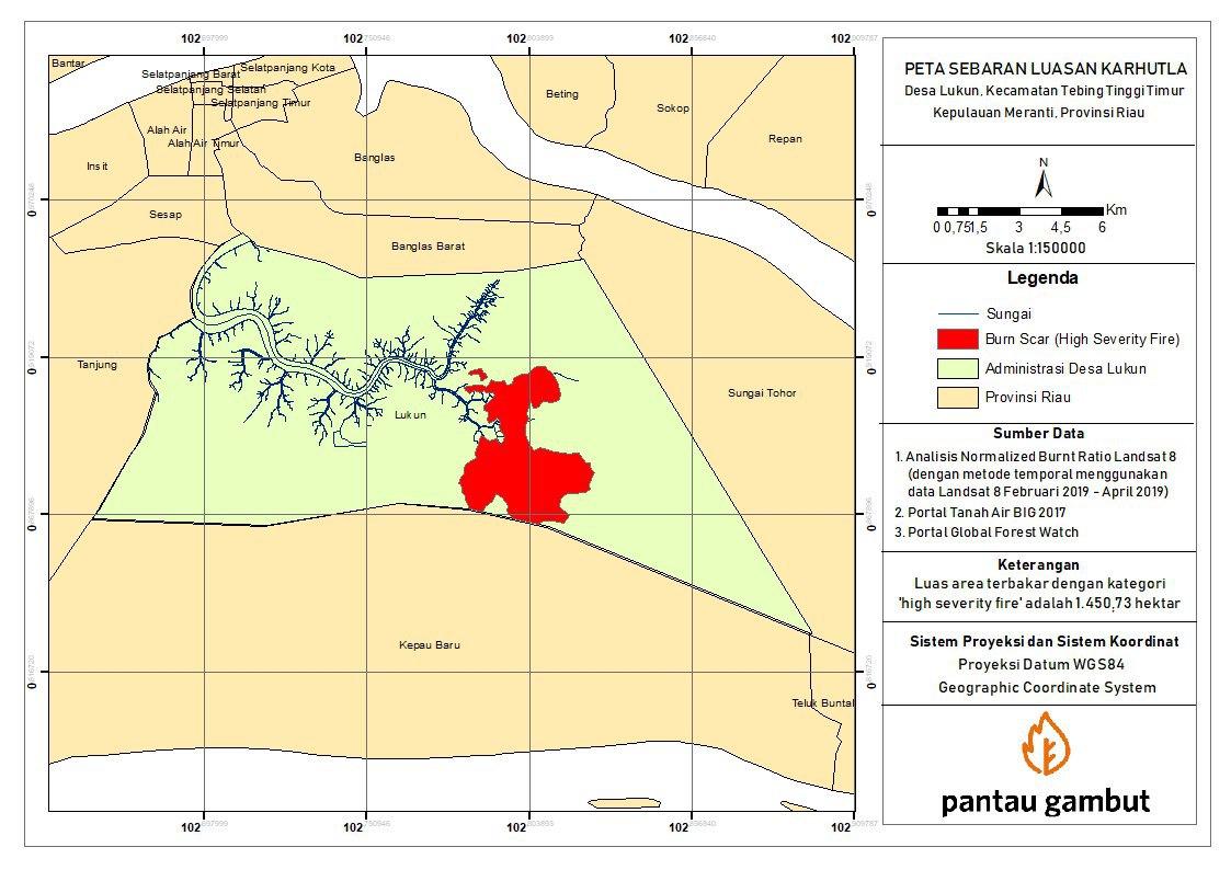 Dari hasil analisis, luasan terbakar di Lukun pada periode 8 Februari 2019 hingga 30 April 2019 mencapai 1.450,73 hektar. Luasan hasil analisis spasial ini menggambarkan bekas area yang terbakar api yang terpantau pada Februari hingga Maret.