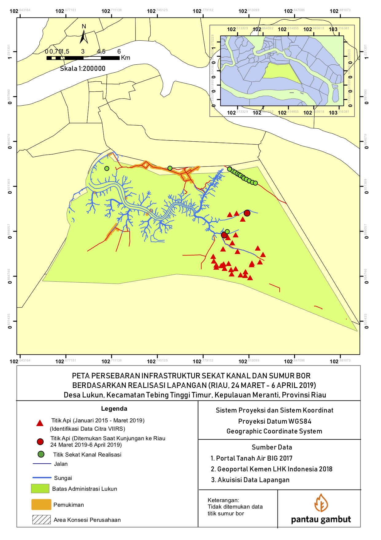 Menurut laporan dari Badan Penanggulangan Bencana Daerah (BPBD) Riau, kebakaran di seluruh Kabupaten Kepulauan Meranti hingga akhir Maret 2019 adalah 232,4 hektar. Lahan gambut dan hutan yang terbakar di kabupaten tersebut tersebar di beberapa desa, satu di antaranya Desa Lukun. Angka luasan terbakar yang diungkap BPBD ini jauh berbeda dengan data di lapangan. Berdasarkan keterangan dari tim LPHD, kebakaran di Lukun luasannya mencapai 400 hektar pada periode yang sama.